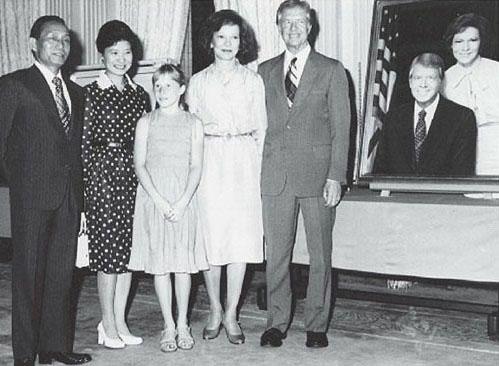 1.在历史上画下重要一笔的“槿惠—卡特会谈”。美国前总统卡特一家访韩纪念照。